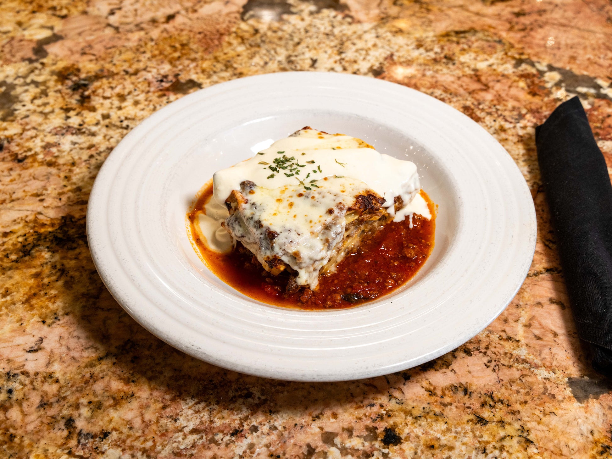 Delight in layers of pasta, creamy ricotta, and savory meat sauce, all finished with a generous topping of melted mozzarella in our Lasagna.